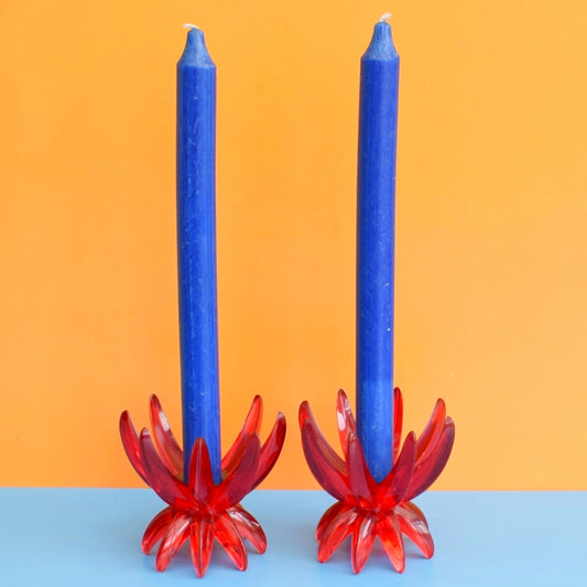 Vintage 1960s Plastic Spike Candle Holders - Red