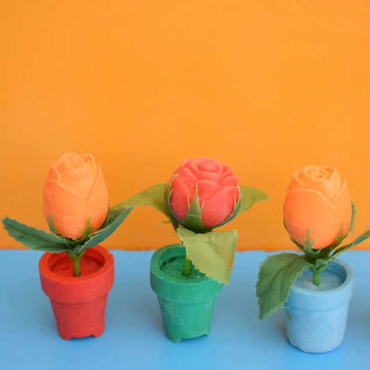 Vintage 1980s Collectable Erasers / Rubbers - Flowers In Pots