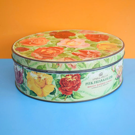 Vintage 1960s Metal Peek Frean & Co Biscuit Tin - Rose Print - Ideal Seed Store