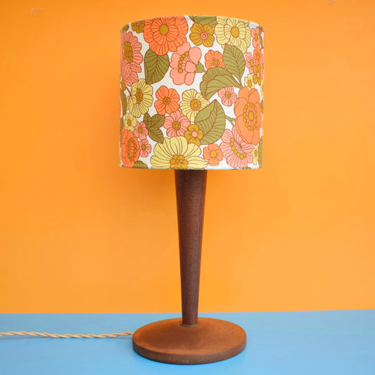 Vintage 1960s Table Lamp - Flower Lamp Shade - Orange & Peach