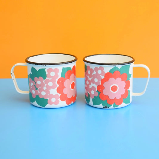 Vintage 1960s Enamel Mug - Finel Arabia - Elisa- Pink Flower