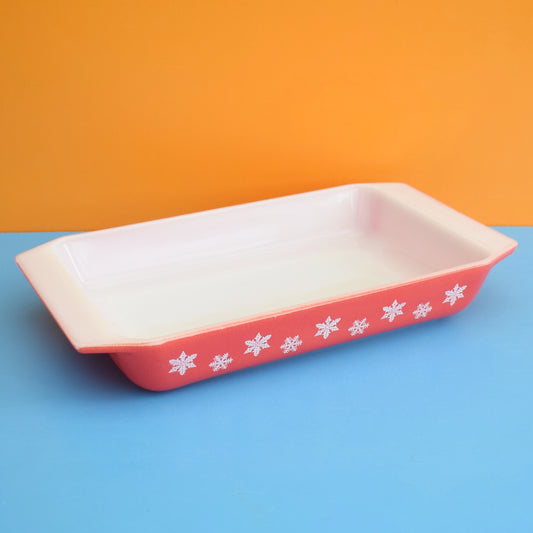 Vintage 1950s Pyrex Glass - Snowflake- Coral Red