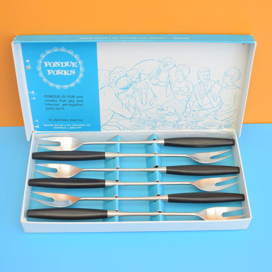 Vintage 1960s Swiss Fondue Set - Butler Fondue Forks - Sheba