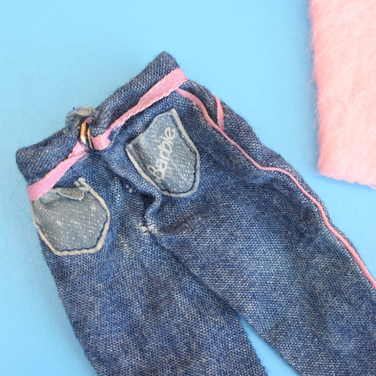 Vintage 1980s Barbie Fashion Jeans- Pink Fluffy Top