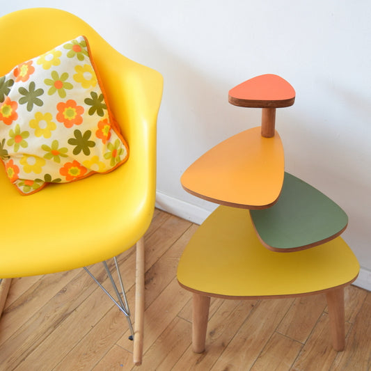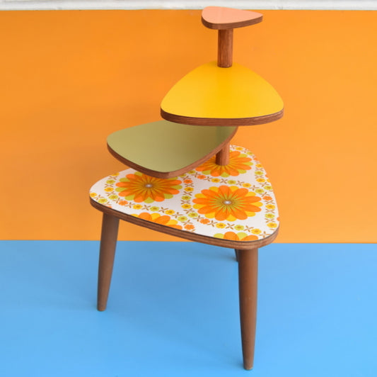 Vintage Style Formica Tiered Stand / Table - Orange, Green & Mustard Formica