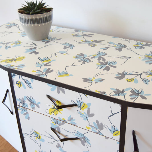 Vintage 1950s Formica Sideboard Unit - Italian - Lime, Blue & Grey