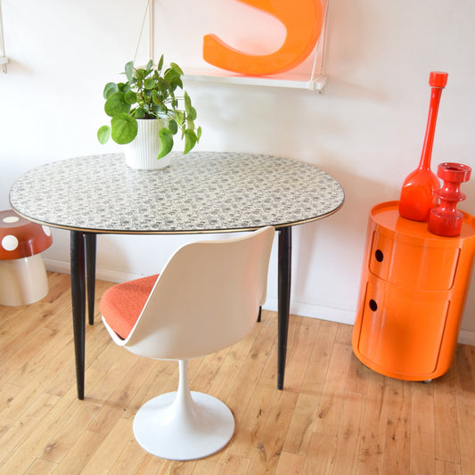 Vintage 1950s Oval Formica Table - Printed Formica - Monochrome