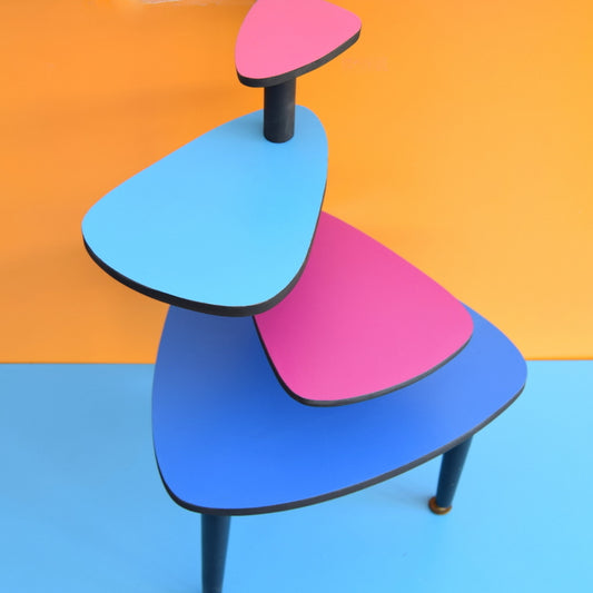 Vintage Style Formica Plant Stand / Table - Pink, Turquoise & Blue