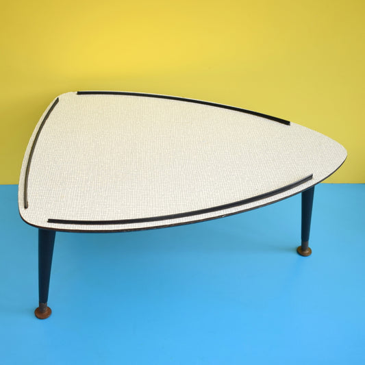 Vintage 1950s Formica Low Side Table - Mesh Pattern - Grey & Black