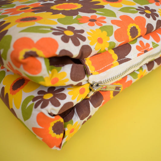 Vintage 1960s Padded Long Folding Cushion - Yellow & Orange Flower Power