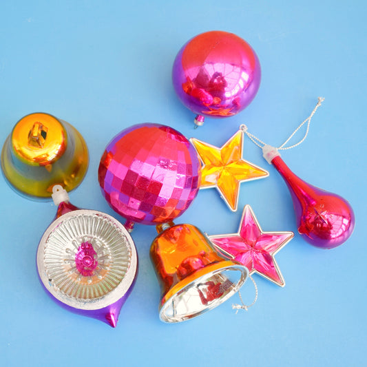 Vintage 1970s Plastic Christmas Mixed Decs - Pink & Gold
