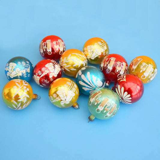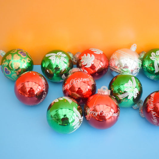 Vintage 1970s Plastic Christmas Mixed Decs - Red & Green