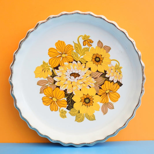 Vintage 1970s Pie / Flan Dish - Flower Power - yellow
