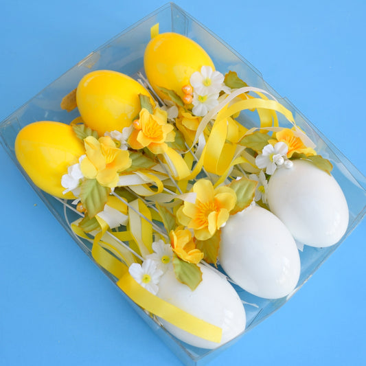 Vintage 1970s Egg Decorations- Yellow / White - Boxed
