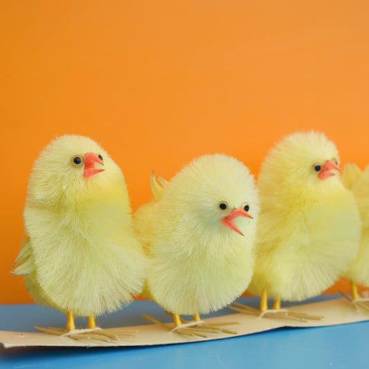 Vintage 1970s Chenille Pipe Cleaner Chicks- Yellow x4