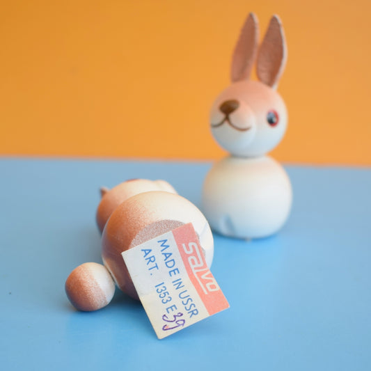 Vintage 1970s Wooden Rabbit Decoration- Russian