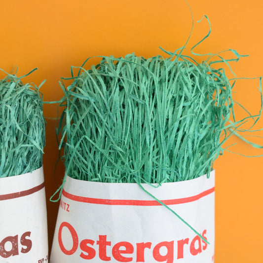 Vintage 1970s Wicker Easter Basket - Green / Natural