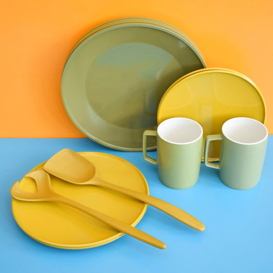 Vintage 1970s Melamine Plastic - Eggy Yellow Set
