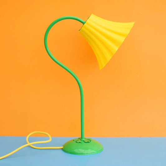 Vintage 1980s Flower Lamp & Shade - Yellow & Green