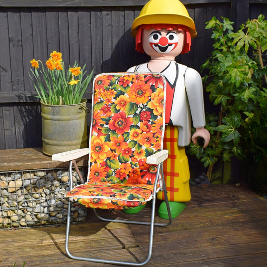 Vintage 1960s Garden Chair - Flower Power - Orange - Reclining