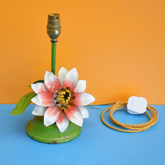 Vintage 1950s French Metal Flower Table Lamp - Pink