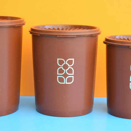 Vintage 1970s Tupperware Fan Top Containers - Dark Chocolate Brown