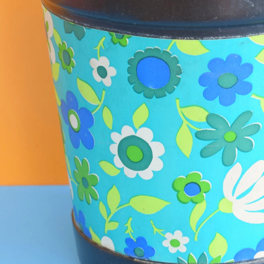 Vintage 1960s Plastic Waste Paper Bin - Flower Power - Blue & Green