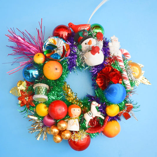 Vintage 1970s Christmas Wreath Made With Vintage Decorations