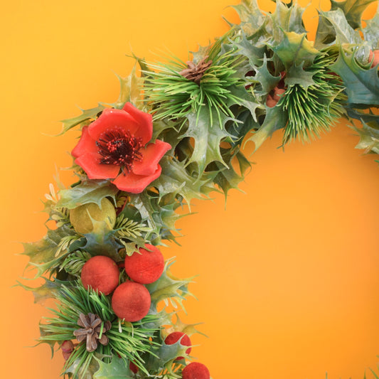 Vintage 1970s Christmas Wreath - Original Plastic/ flocked