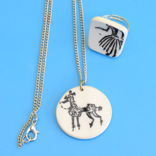Vintage 1950s alfred Meakin Shard Necklace / Ring - Poodle