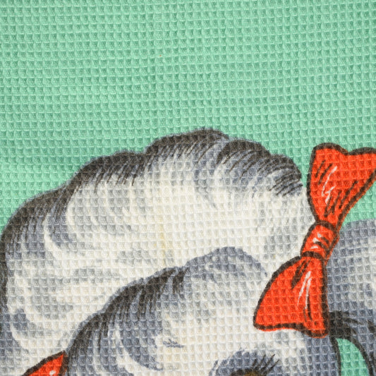 Vintage 1970s Tea Towel - Poodle In Bow - Kitsch