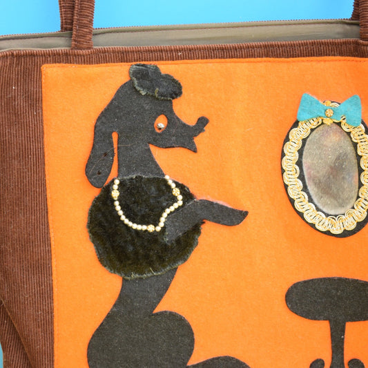 Vintage 1950s Poodle Felt & Cord Hand Bag - Brown & Orange