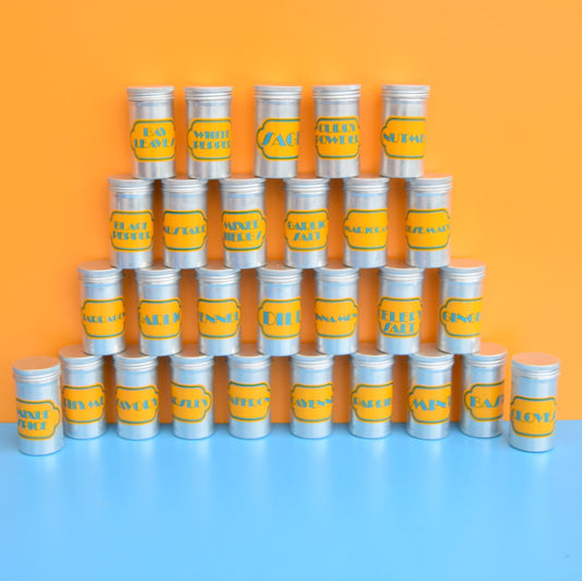 Vintage 1970s Metal Spice Canisters - Ian Logan - Blue & Yellow