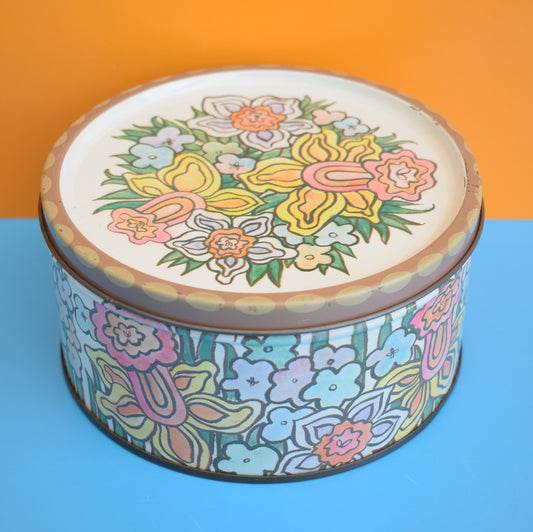 Vintage 1970s Rowntree Flower Power Tin - Pastels