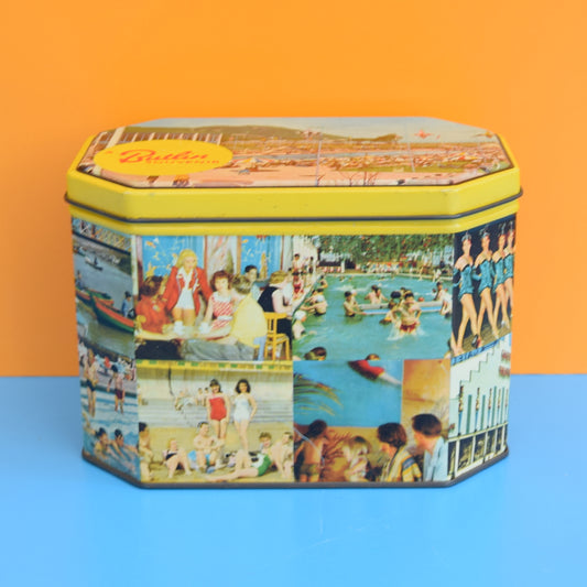 Vintage 1960s Kitsch Metal Tin - Collage Design