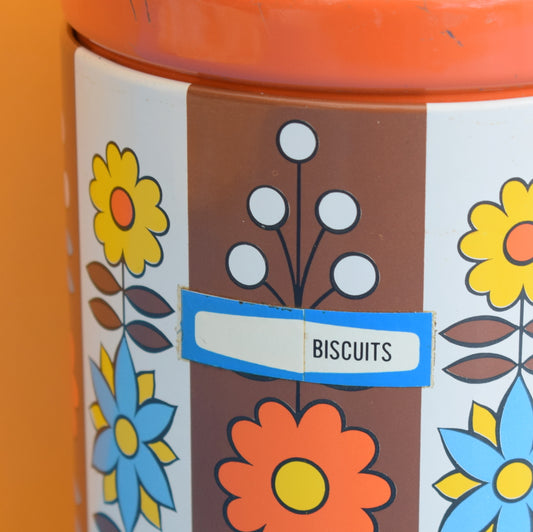 Vintage 1970s Flower Power Tin - Orange & Brown