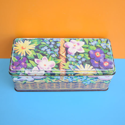 Vintage 1980s Basket Of Flowers Tin - Purple