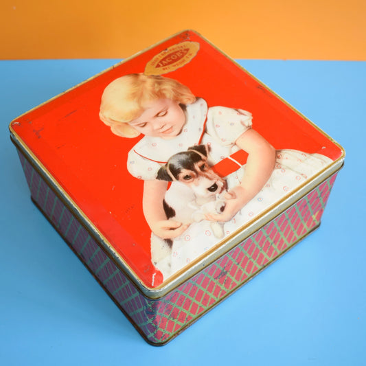 Vintage 1950s Jacob's Biscuit Tin - Girl & Terrier