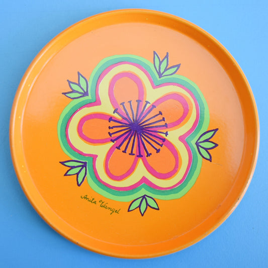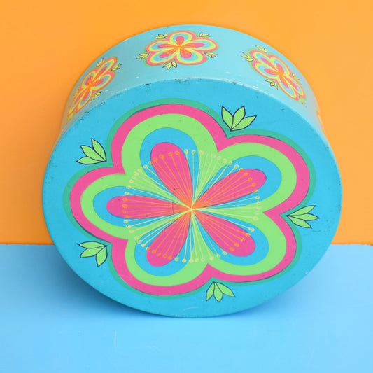 Vintage 1970s Metal Tin - Danish by Anita Wangel, Blue & Pink