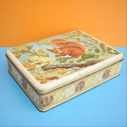 Vintage 1950s Metal Biscuit Tin - Squirrel Design
