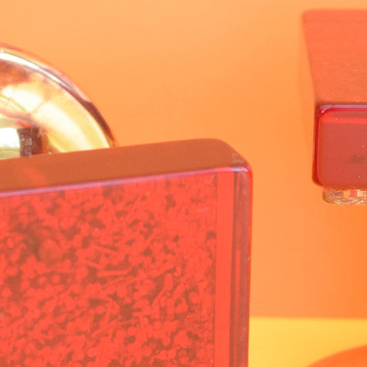 Vintage 1960s Plastic Handles / Door Knobs - New Old Stock - Square Glitter - Red / Blue / Silver