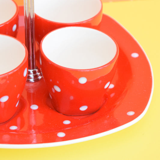 Vintage 1950s Midwinter Spotty Domino Egg Cups On Stand - Red