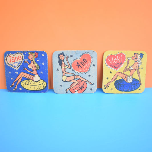 Vintage 1950s Baby Bubbly Beer Mats / Drinks Mats / Coasters - Ann, Jane & Vicki