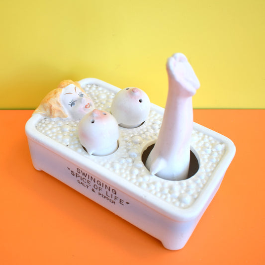 Vintage 1940s Kitsch Naked Lady Ceramic Salt & Pepper - Swinging Spice Of Life - Bathing Beauty