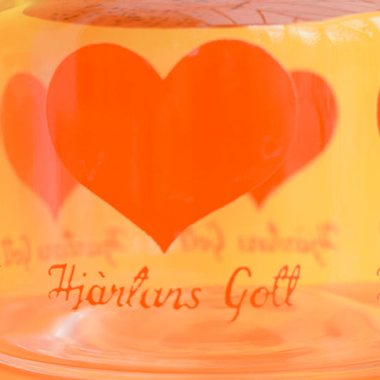 Vintage 1970s Swedish Glass Jar & Cork - Heart Design - Red & Clear
