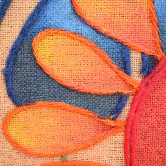 Vintage 1960s Large Swedish Hessian Collage Picture / Painting - Flower Power