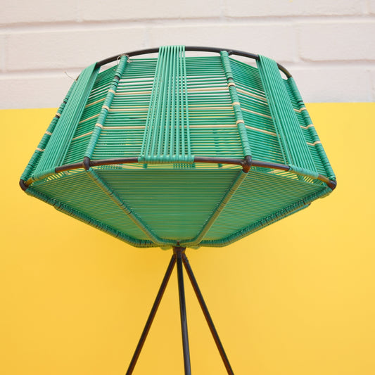 Vintage 1950s Atomic Wool Basket / Plant Stand - Green & Black