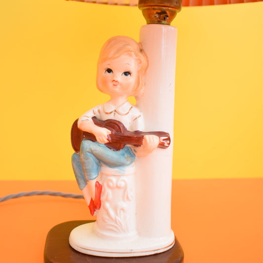 Vintage 1950s Ceramic Table Lamp - Girl With Guitar