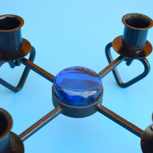 Vintage 1960s Candle Holder - Torsås Sweden - Metal Hearts & Blue Glass