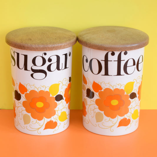 Vintage 1960s Crown Devon Ceramic Jars- Flower Power - Coffee / Sugar / Biscuits / Shakers.